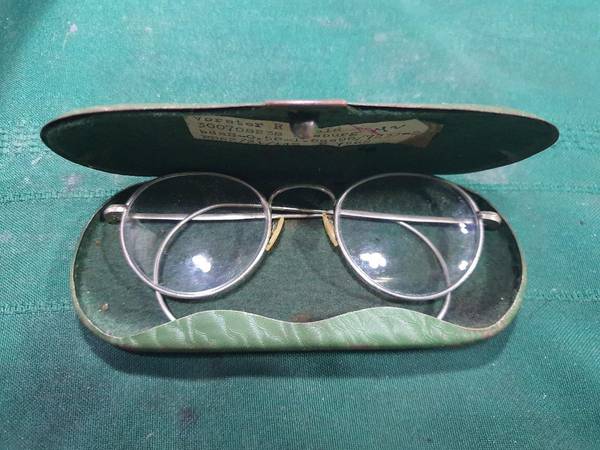 Antique Zeeburg Dutch Round Wire Rim Eye Glasses Ear Hook + Case.