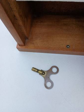 Nice antique clock no time clock only has winding key hole from the back allows you to see clock running and make an adjustment for slower or faster keeps good time no issues freshly oiled great item 14 in tall 8 in wide 3 and 3/4 in deep made in France very charming piece