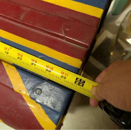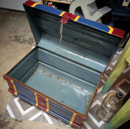 The interior is clean and painted blue. The trunk has carrying handles that work great.