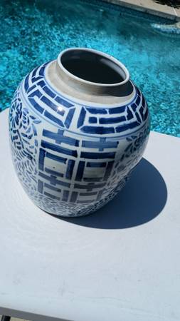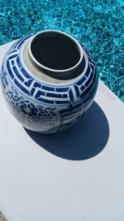 Vintage Chinese blue and white ceramic vase excellent condition. No chips or scratches house foundry mark on the bottom