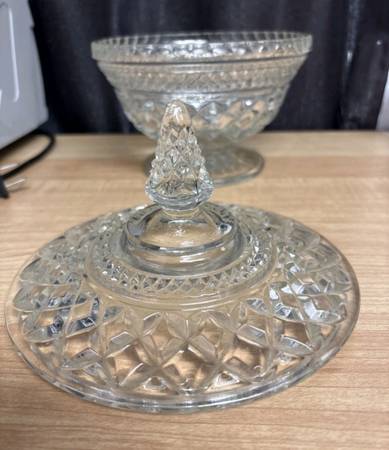 Vintage Anchor Hocking Wexford glass candy dish compote footed bowl. No chips or cracks