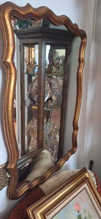 Vintage Wooden gold mirror, wall decor. Gold Regency Heavy.. Great display piece