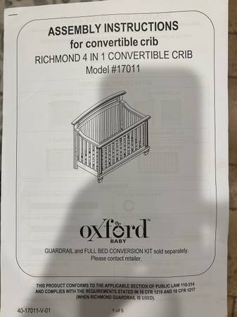 Oxford Baby Crib Richmond 4 in 1 Convertible Crib Gray Model 17011 Mattress