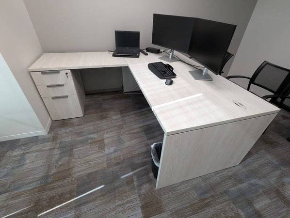 - Grey L-Shaped Office Desk - 72"x77"x29"