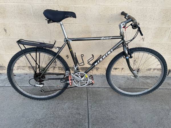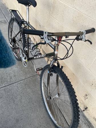 1980’s NISHIKI Ariel black chrome mountain Bike, mostly original, Shimano Deore derailer, custom suspension goose neck, gel seat and tires probably changed yrs ago, rides good but front derailer could use adjustment $160. No Email or text, call show contact info