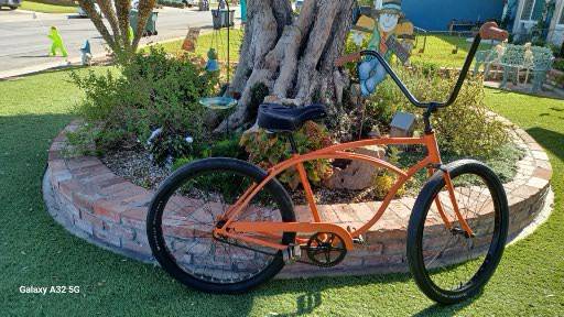 26" Schwinn Vintage Custom Mens Beach Cruiser Made in Chicago 1953, 26" Black Alloy Wheels. 18" Orange Frame. Highrise Handlebars. This Bike looks and rides XLNT. Call Ed cell or