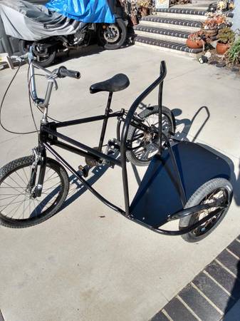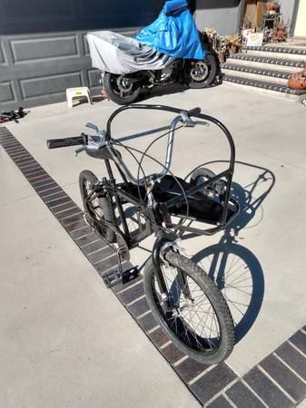 I just finished with renovation of this BMX sidehack my brother built. 20" bike tires, 5 speeds, new shift cable and housing, asking only $185 Cool rig!