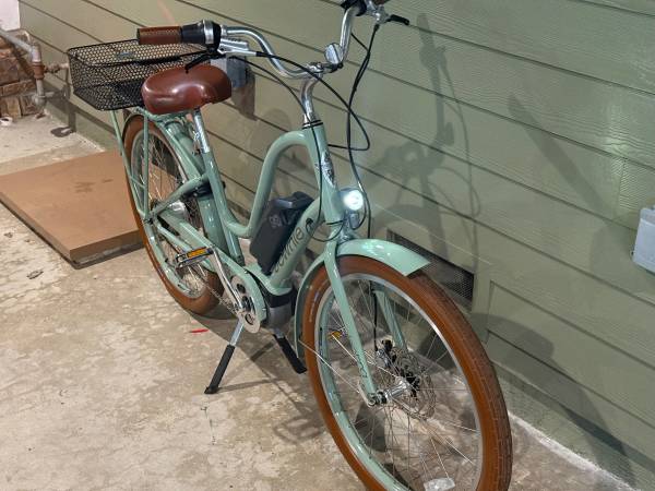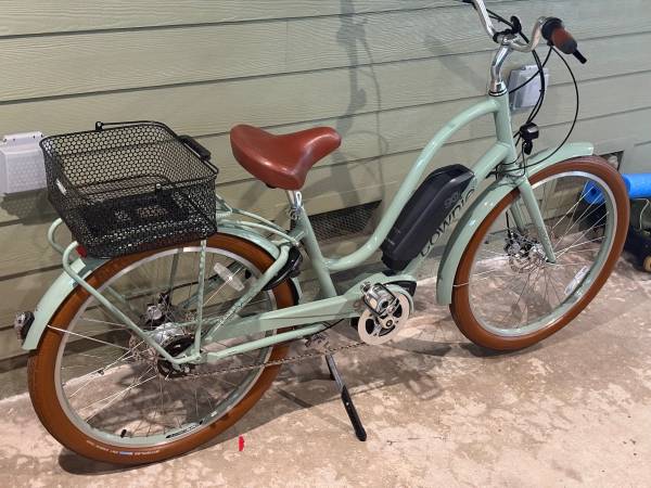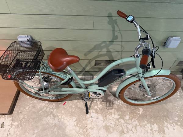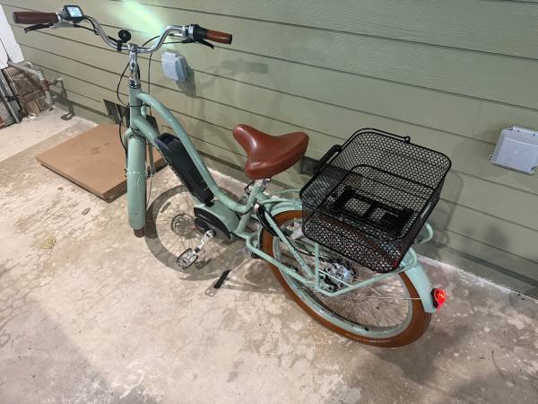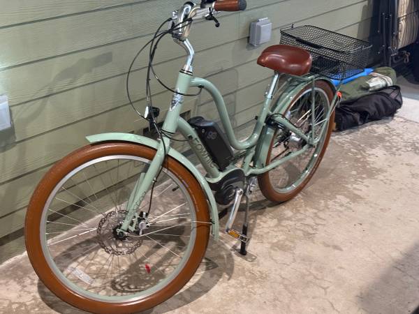 Electra 5i townie go with hydraulic disc brakes and bosch mid drive rear rack with removable basket,color matched fenders, front and rear lights, cafe rear wheel lock, have keys and charger, great shape 388 miles show contact info