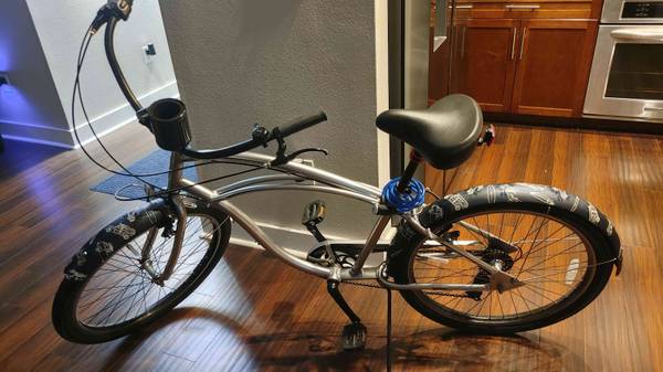 Silver Electra Cruiser 7 beach cruiser with custom fenders (dark blue with surfboard and classic car graphics) was stolen from my apartment garage today, located at 575 Elm Ave, Long Beach, 90802. Please contact me through the link below if you see this bike on the street or have any information regarding its whereabouts. Thanks!