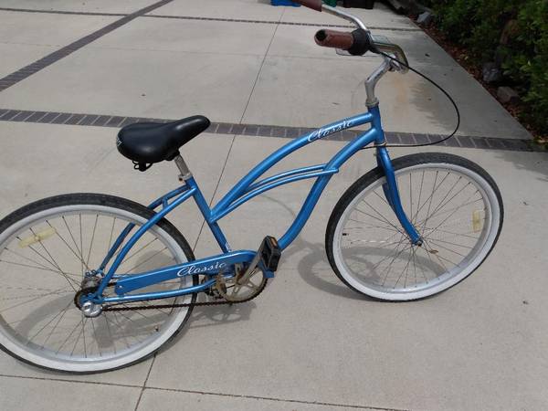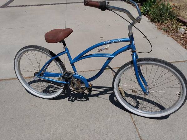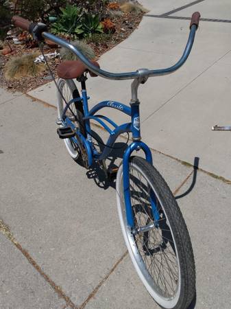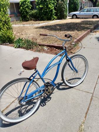 ZF Classic 3 speed cruiser bike, just cleaned, lubed, wheels trued. Has 26" tires, 3 speed Nexus hub, sparkly light blue paint, rides great! Offering with black or brown seat and grips, posting for only $135