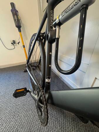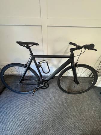 Black urban track bike. Maybe used 2x. I’m 6feet for size reference.