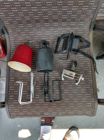 Wald metal basket with support legs $23. Black or white handlebar mount basket $20, 20" or 24" bike basket with axle/leg supports $20 Cupholders $5, phone holders $5 and $10, Faux wicker $10 New folding basket $20 pic forthcoming, rear racks $20. Frame and seat bags $5-$8