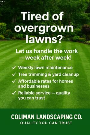 Transform your outdoor space with quality you can trust! We specialize in lawn maintenance, tree trimming, and complete yard care for both residential and commercial properties. Whether you need weekly upkeep or a full landscape makeover, our team delivers reliable, professional service at affordable rates.