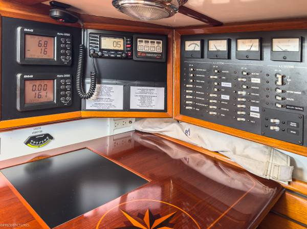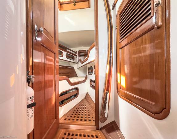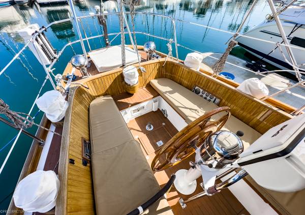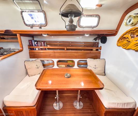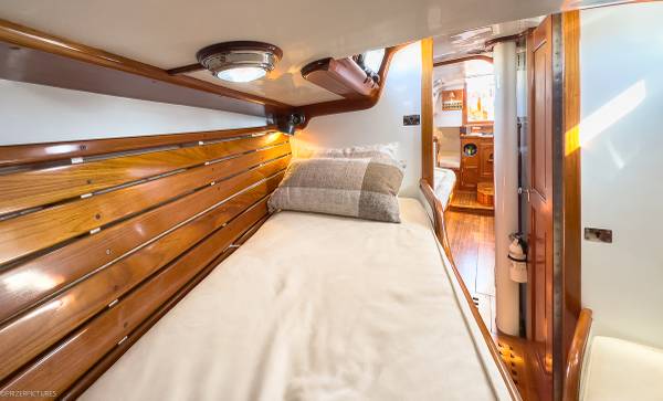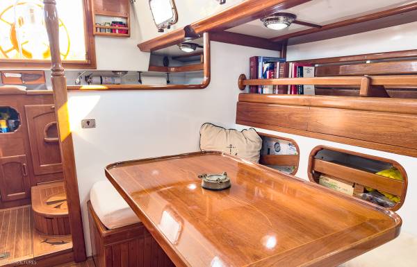 Originally launched as Kimo, Harvest Moon has been extensively customized and finished to exceptional standards, featuring exquisite teak joinery, teak-and-holly soles, and fine craftsmanship throughout. Her solid fiberglass hull and deck construction remain in excellent condition, complemented by modernized systems, thoughtfully updated equipment, and an impressive list of recent upgrades. The result is a one-of-a-kind Columbia 40 that is as seaworthy as she is beautiful.