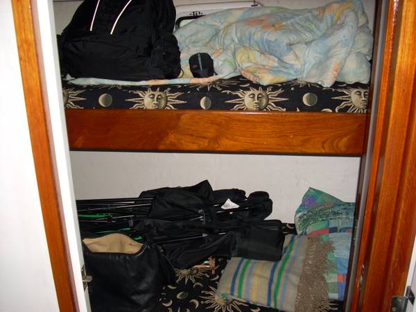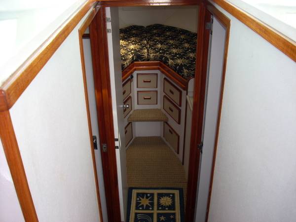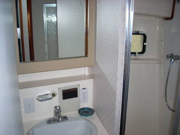 Has a V berth bed in stateroom plus another cabin with two bunks. Vacuflush toilet system and full size shower in bathroom. Large galley and salon to Relax in..