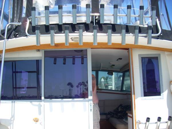 Twin helms, New Bimini Top also Front Windows Cover, Twin bait tanks newly replumbed with New bait pumps and hoses. Outriggers. 4ea. New Batteries