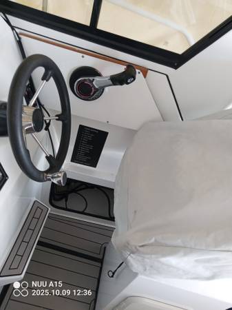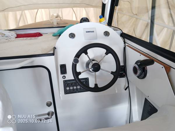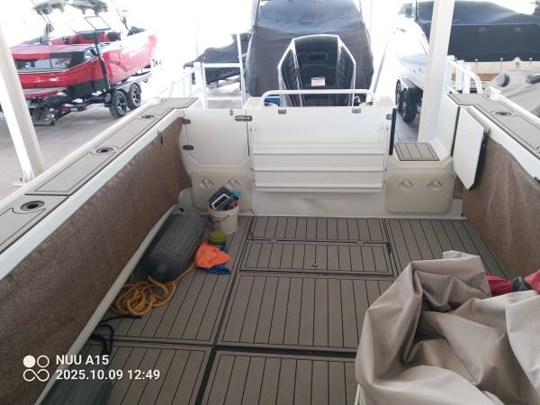 sun shade ( will make very easy to weather in winter enclosure ) lockable v berths with marine head- lockable seats enclosures with complete boat cushion package, windlass, fish box with drain and pump-, rear extended platforms/fish cages with ocean ladders,