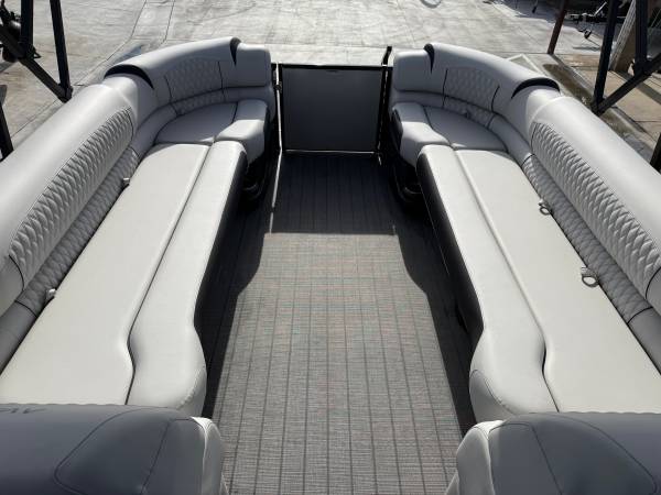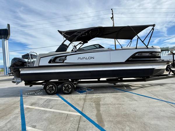 2022 Avalon 27' Excalibur Elite Windshield in Black and White with a 400HP Mercury Racing motor with only 60 Hours! Options include: Ultrafine Interior upgrade, (2) High Back Reclining Admiral's Chair, (2) Adjustable Height Chair Pedestals, Premium Sound Package, Mercury Active Trim, Livewell Under Bench, Washdown System, Saltwater Package, Rough Water Package, 100 Gallon Gas Tank, Solid side Keels, In-Tube Ski Storage Locker, Bimini Top For GX Tower, Black GX Tower and Fusion Premium Black Canister Speakers.