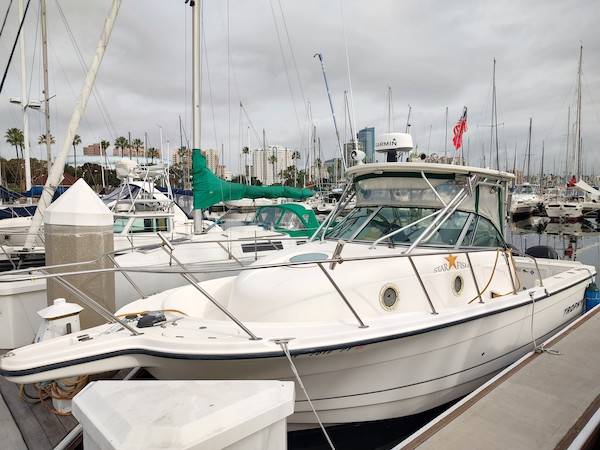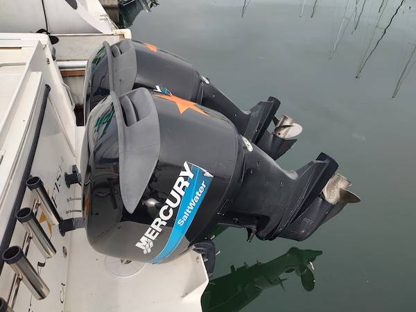 A very well maintained example of this rugged fishing boat, known for its versatility and performance. She features a freshly painted bottom (Sept. 2023), twin Mercury 4-stroke outboards with low hours, a complete electronics package including Garmin chartplotter, radar, fish-finder, windlass, VHF, and SiOnyx night-vision camera, and excellent canvas/eisenglass. She has ample accommodations for overnighting, including an enclosed head, and is ready to take her new owners out to the fish in style, safety and comfort.