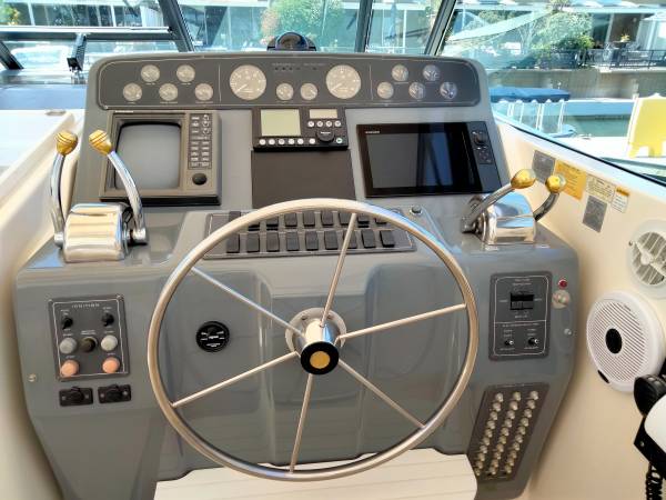 Twin 450hp Cummins, Huge interior, Full Electronics, 2 staterooms, Extra props, Priced for the Quick Sale!! Call McClintock Yachts for a private showing.