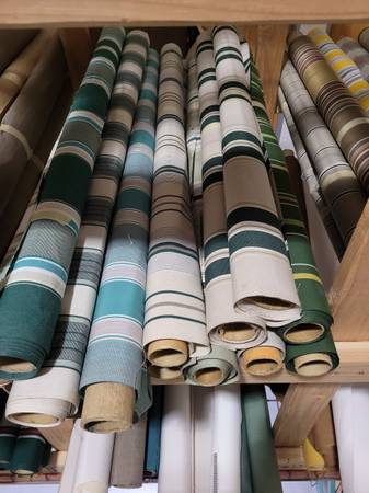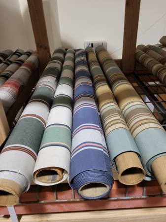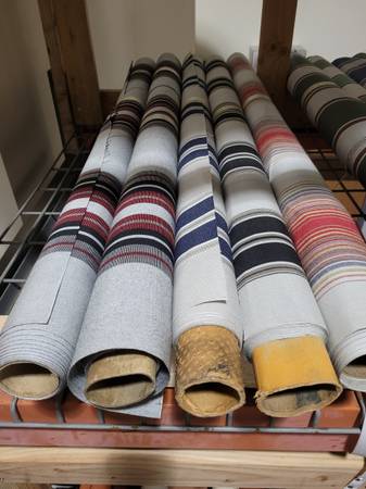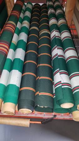 We also have some striped Sunbrella Marine / Awning 46” wide material (see photos) for only $12/ yard.