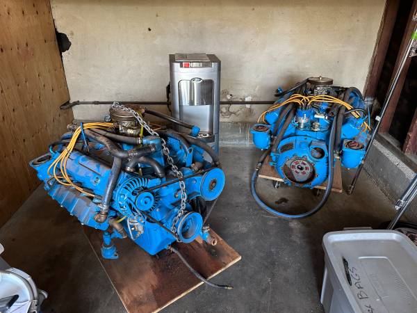 (2) 1966 Chrysler 318 Engines with approximately 100 hours on rebuild. Came out of a Chris Craft. Starboard motor has rear main leak on the engine. Engines only. $3,725 obo.