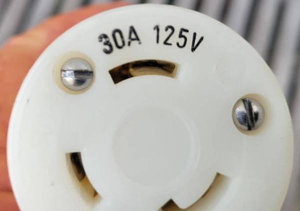 Shore-power adapter / pigtail, 50A, 125/250V male to 30A, 125V female. In very good condition. Located in the Belmont Shore area of Long Beach.