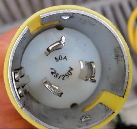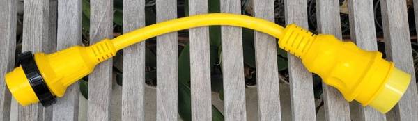 Marinco shore-power adapter / pigtail, 50A, 125/250V male to 30A, 125V female. In excellent condition. Located in the Belmont Shore area of Long Beach.