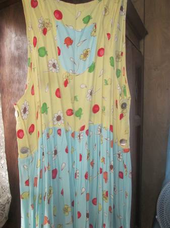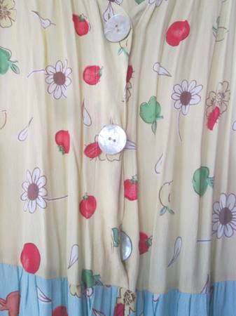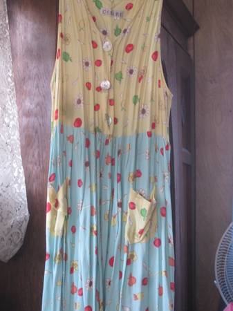 Awesome dress with cute designs, pockets and mother of pearl buttons! Size Large