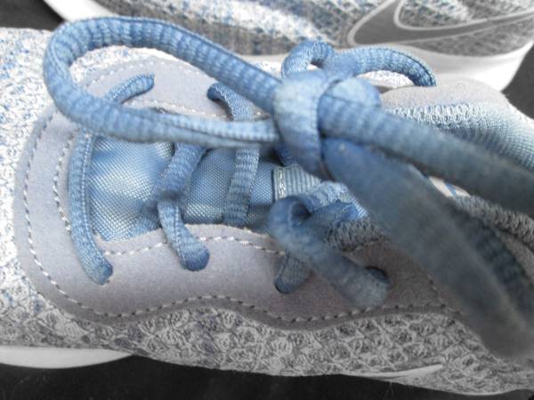 This 'Mountain Blue' women's sneaker sports a melange textile upper accented by tonal leather eyestays and a knit collar.