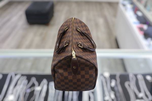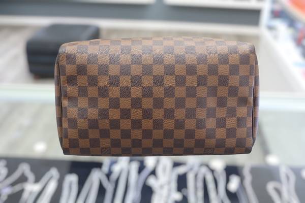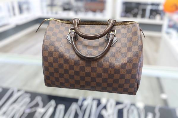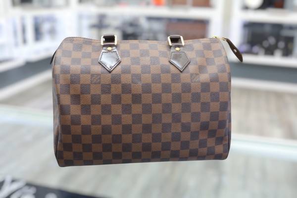 Up for sale, we have a pre-owned Louis Vuitton Damier Ebene Speedy 25 Bag. The item is in good cosmetic condition. Previous use has left a few signs of wear, such as creases. The bag's measurements are 10" (length), 8" (height), and 5.75" (width). This listing is for the item with an Entrupy authentication certificate. Please view all of the pictures that are provided so that you can have a proper understanding of the item you are purchasing. Thank you. A layaway plan is available with a 30% deposit. Shipping comes with tracking information.