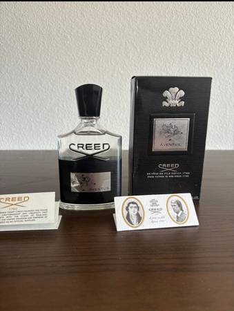 Elegant Creed Aventus bottle. Features black and silver design. Iconic and sophisticated look. -receipt included