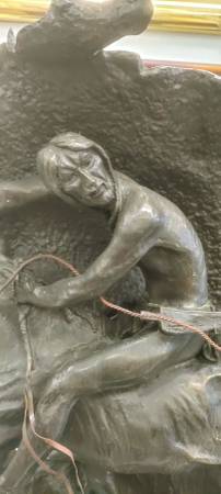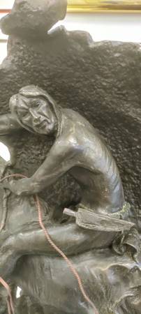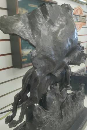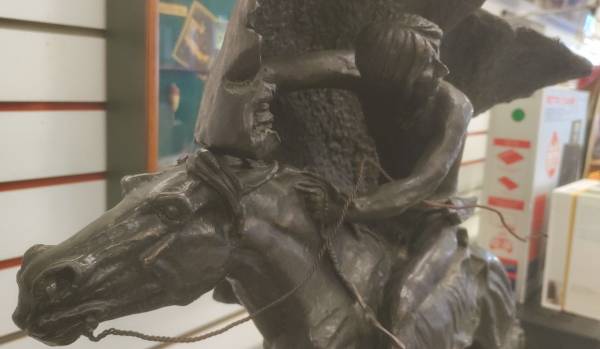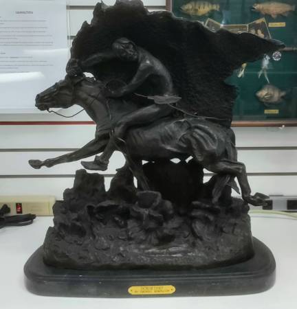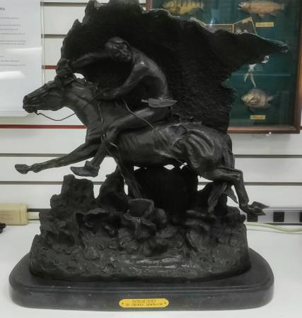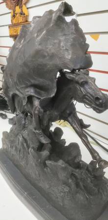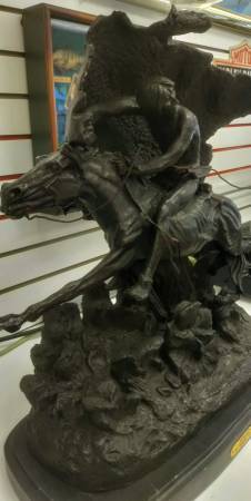 Classic sculpture, American Bronze on Marble. This sculpture depicts a native with a buffalo hide held up to hide and steal horses... reminiscing of the old West. This is handmade reproduction of the 1907 sculpture by Remington... price is negotiable.