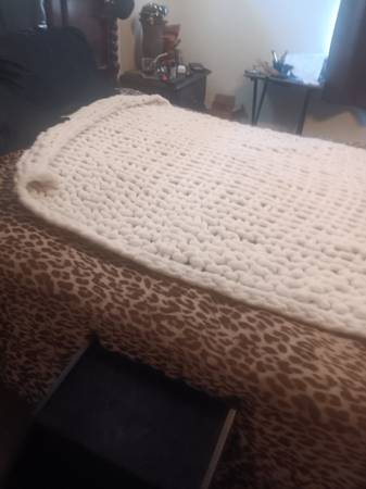 Handmade crochet chunky throw blanket. Approximately 75 x 48 inches.