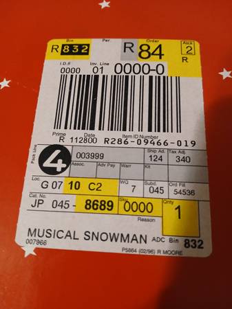 Vintage JC Penney's Fiber Optic and Musical Snowman with original box. Purchased in 2000. Works great and looks great. You can use batteries or plug it in.