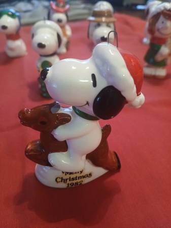 Vintage Snoopy Ornaments from 1982 1 Charlie Brown 1 Peppermint Patty 1 Spikey (Snoopy's brother) 8 Snoopy 11 total