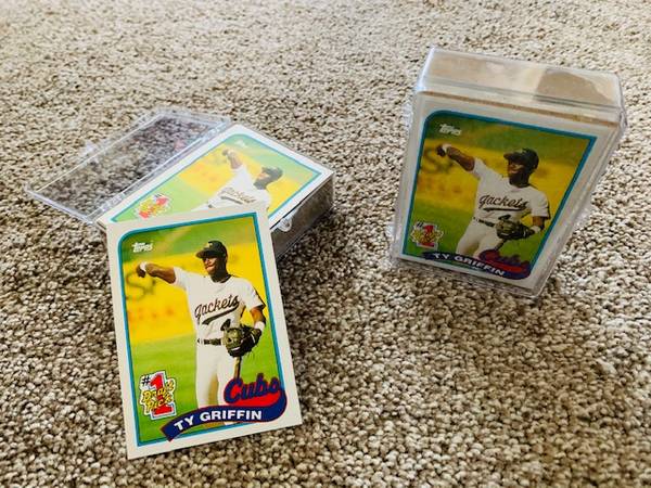 1989 Topps Baseball Cards of rookie Ty Griffin (Card #713). This package consist of "99" cards for sale. Cards are in excellent condition.