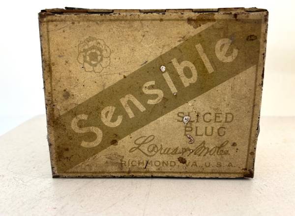 ANTIQUE SENSIBLE SLICED PLUG TIN GREAT PATINA CIRCA 1920'S *See Craigslist link "more ads by this seller"