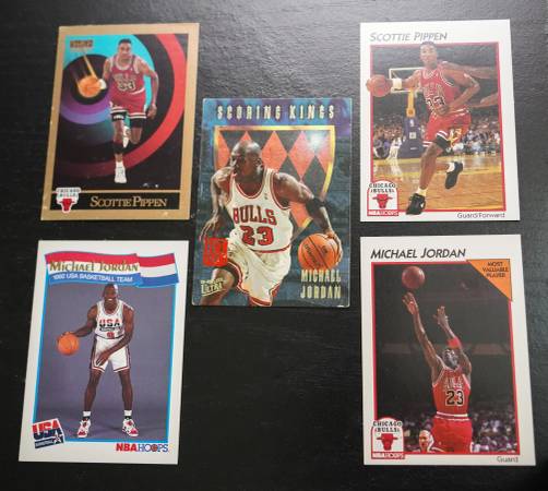 **** 1995-96 (Michael Jordan) Fleer Ultra Scoring Kings Hot Packs Card #4. Original release from Fleer Corp. & NBA. Chicago Bulls. **** 1991-92 (Michael Jordan) " Most Valuable Player" NBA Hoops Card #30 Chicago Bulls. **** 1991-92 ( Michael Jordan) NBA Hoops Card #30 McDonald's Set. 1992 USA Basketball Team. **** 1991-92 (Scottie Pippen) NBA Hoops Card Chicago Bulls. **** 1990-91 ( Scottie Pippen) Skybox Card #46 Chicago Bulls. Note: Please see the pictures, Collectible Cards are in excellent condition.