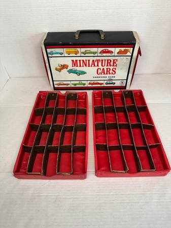 Vintage 1966 Mattel Miniature Cars Carrying Case w/ 2 Trays (holds 40 Cars) Made by Mattel, 2 years before hot wheels Stamped “Mattel Inc. Toymakers 1966” It’s in good condition for being a 60...