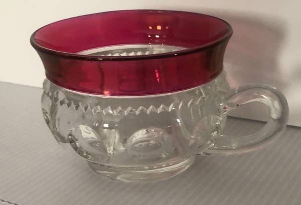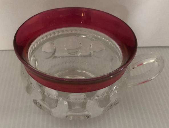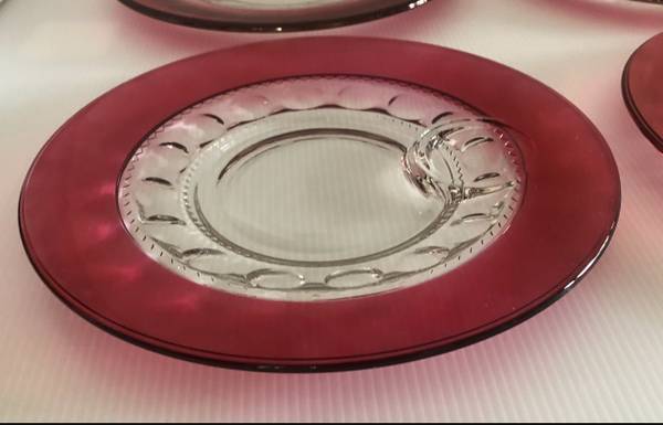 4 Vintage Kings Crown design Clear Glass Ruby Red Plates with Cups. Very good condition. Plate diameter: ~ 10 1/2 Cup: 3 1/2; with handle ~ 5” Price: $50 CASH ONLY Please click on the 'more ads by...