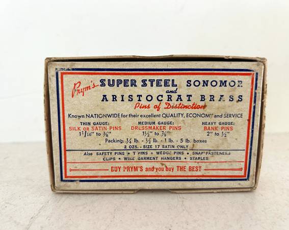 VINTAGE PRYM'S SUPER STEEL SONOMOR DRESSMAKER PINS BOX *See Craigslist link "more ads by this seller"