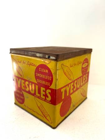See Craigslist Link "more ads by this seller" VINTAGE TYESULES FUEL FOR LIGHTERS FOR GREASE SPOT CLEANING CAPSULE MAKERS FOR A CENTURY MADE BY JOHN TYE & SON LTD LONDON, N.7.