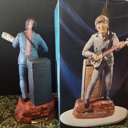Only the strap on the guitar has separated from the glue lifting. Box is in very good condition for its age. Original price paid $44.95 back in 1981. Hand crafted porcelain by Gary Schildt. Music box plays. “I wanna hold your hand”