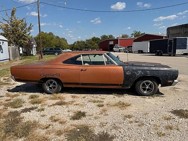 1969 Plymouth Roadrunner For Sale -Real RM23 Roadrunner hard top -383, 4 speed car -Run, driving, stopping project! -Has non matching 400 engine, has the original numbers matching 4 speed trans -All of the best options on this one! Bucket seats and console, A31 3.91 gear sure grip 8 3/4 rear end, tach, hood blackout treatment, N96 Air Grabber hood -Original dash VIN, fender tag, broadcast sheet, and partial VIN stamps are intact -Purchased from the original owner earlier this year! Comes with great paperwork -New Mexico car its whole life so it is very very solid -Totally complete! (Except plastic console shell was broken but the rest of the console pieces are included) -Great ratty driver with a little more love or candidate for an easy resto! -Clean title -Located in Celeste, TX 75423 -Call or text 505-503-3274