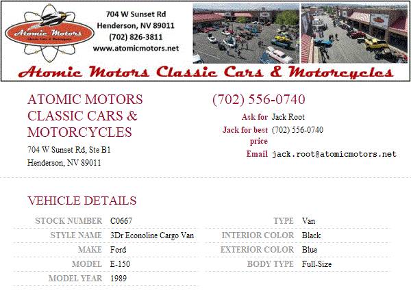This vehicle is located at Atomic Motors Classic in Henderson, NV just 20 mins from the fabulous Las Vegas Strip. Come down and see us or call 702-826-3811 or 702-556-0888. Additional pictures and videos may be found on our site at www.atomicmotors.net
