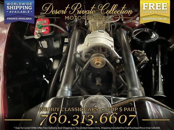 WE BUY CLASSIC CARS - CONSIGN and SELL - PHOTO SHOOT RENTAL IS AVAILABLE California buyers must pay CA sales tax , all prices in USD . Disclaimer-Finance Requirements listed at our website-Price does not include sales tax and DMV registration fees Monthly payment is based on approved Credit for more Inventory VISIT OUR WEBSITE https://www.desertprivatecollection.com/ or call (760) 313-6607 FOR CONSIGNMENT PLEASE CONTACT US (760) 313-6607