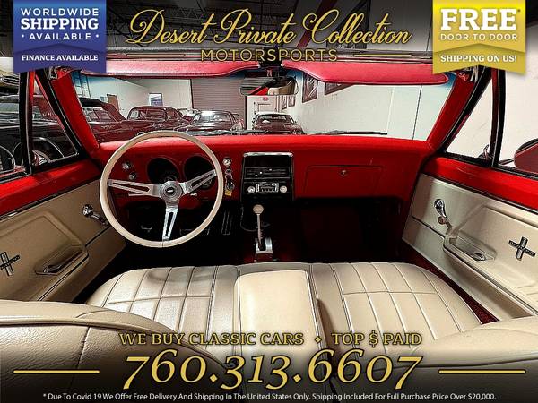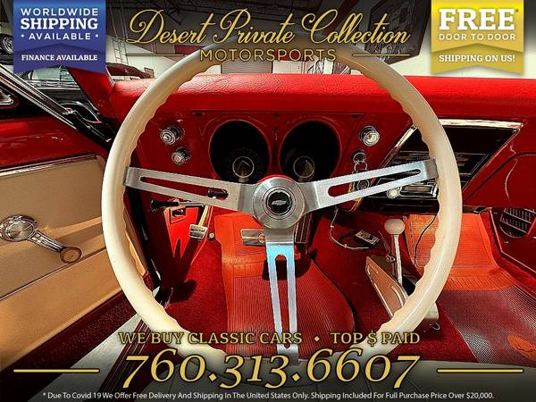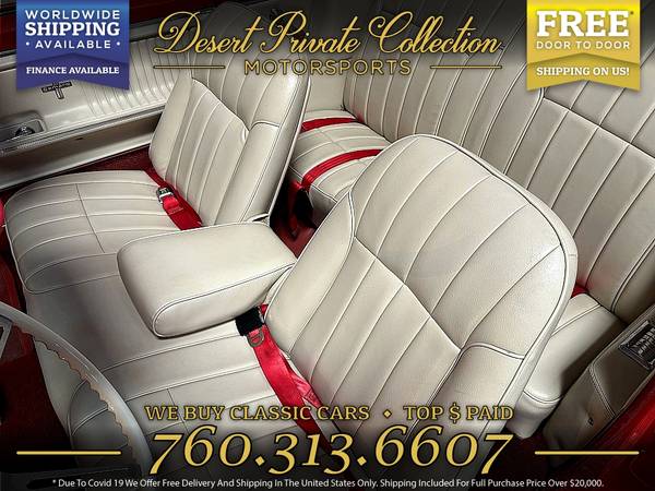 WE BUY CLASSIC CARS - CONSIGN and SELL - PHOTO SHOOT RENTAL IS AVAILABLE California buyers must pay CA sales tax , all prices in USD . Disclaimer-Finance Requirements listed at our website-Price does not include sales tax and DMV registration fees Monthly payment is based on approved Credit for more Inventory VISIT OUR WEBSITE https://www.desertprivatecollection.com/ or call (760) 313-6607 FOR CONSIGNMENT PLEASE CONTACT US (760) 313-6607