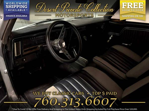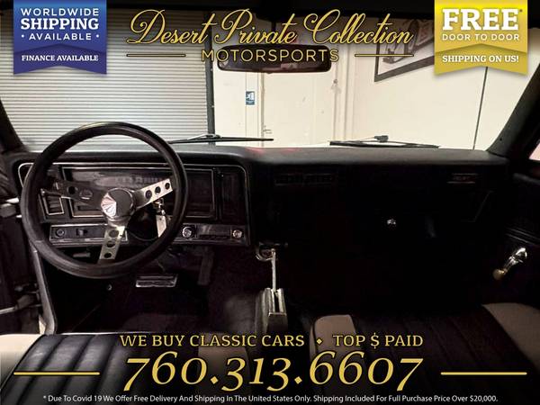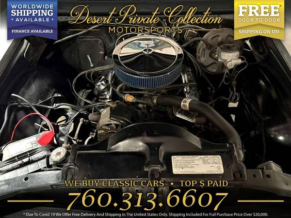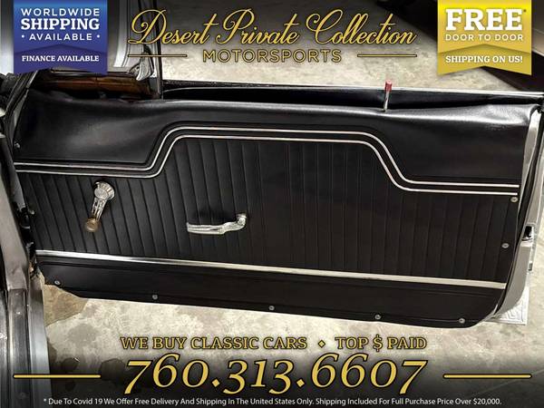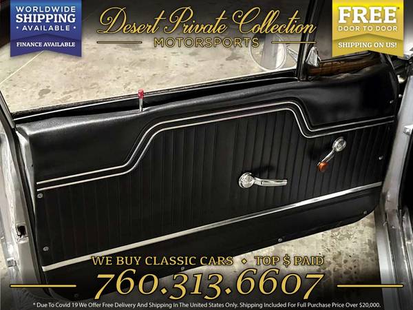 WE BUY CLASSIC CARS - CONSIGN and SELL - PHOTO SHOOT RENTAL IS AVAILABLE California buyers must pay CA sales tax , all prices in USD . Disclaimer-Finance Requirements listed at our website-Price does not include sales tax and DMV registration fees Monthly payment is based on approved Credit for more Inventory VISIT OUR WEBSITE https://www.desertprivatecollection.com/ or call (760) 313-6607 FOR CONSIGNMENT PLEASE CONTACT US (760) 313-6607
