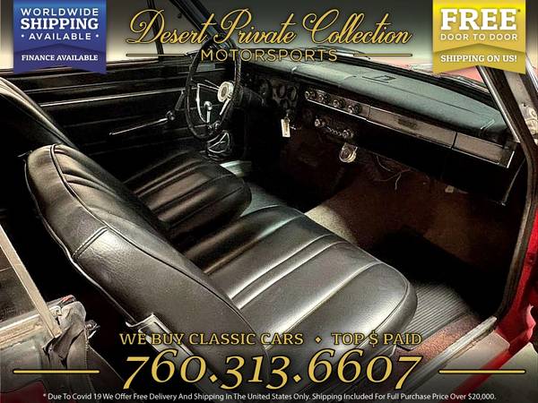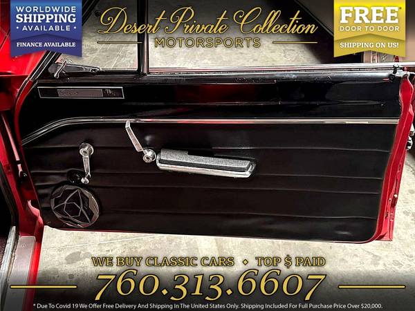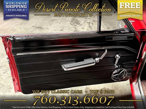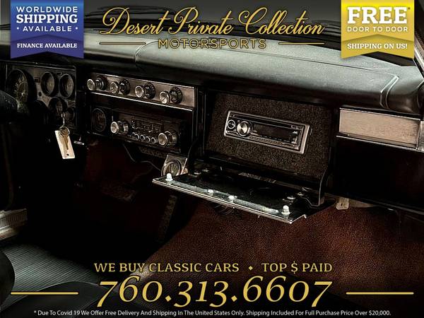 WE BUY CLASSIC CARS - CONSIGN and SELL - PHOTO SHOOT RENTAL IS AVAILABLE California buyers must pay CA sales tax , all prices in USD . Disclaimer-Finance Requirements listed at our website-Price does not include sales tax and DMV registration fees Monthly payment is based on approved Credit for more Inventory VISIT OUR WEBSITE https://www.desertprivatecollection.com/ or call (760) 313-6607 FOR CONSIGNMENT PLEASE CONTACT US (760) 313-6607